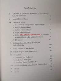 | Saatavilla | 1 kpl | | Julkaisuvuosi | 1973 | | Sivuja | 220 | | Painos | 1 | | Kunto | K2 | | Sidonta/painoasu | Nahkaselkä | | ISBN | 951-99023-4-1 | | Kielet | Suomi |