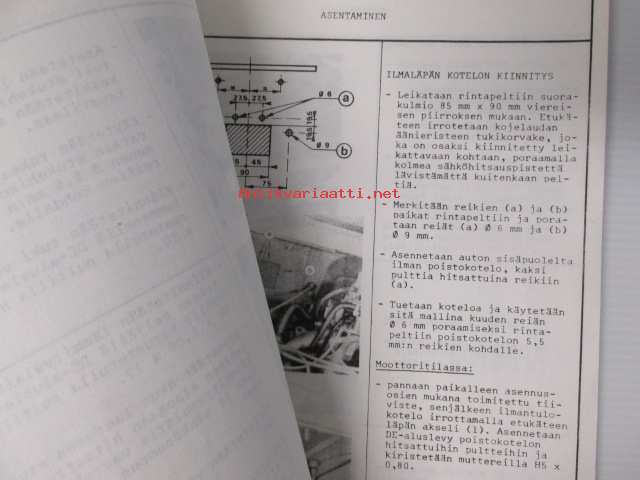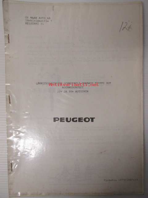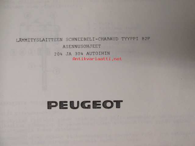 Peugeot 204 ja 304 lämmityslaitteen Schneebeli-Chabaud tyyppi B2P asennusohjeet - katso kuvista sisältöä ja mallimerkintöjä tarkemmin