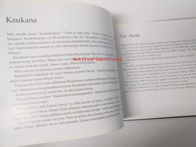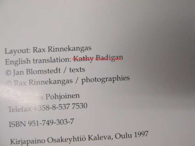 | Saatavilla | 1 kpl | | Julkaisuvuosi | 1997 | | Sivuja | 64 | | Kunto | K2 | | Sidonta/painoasu | Kuvitettu kovakantinen | | ISBN | 951-749-303-7 | | Kielet | Suomi, Englanti |