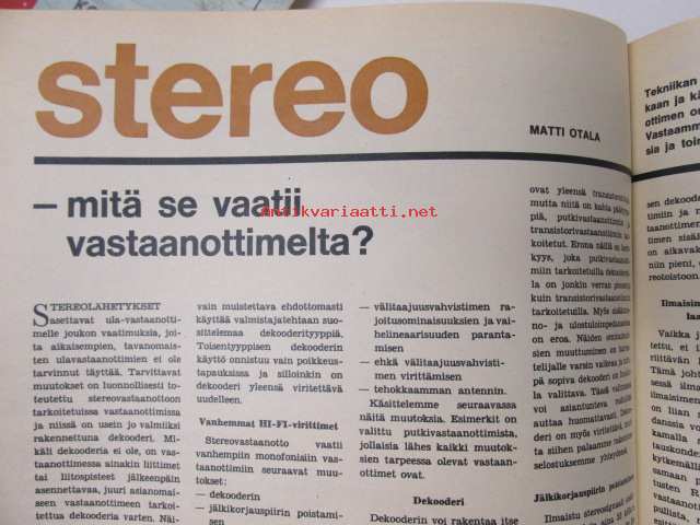 Tekniikan Maailma 1967 nr 4 sis. mm. seur. artikkelit / kuvat / mainokset; Kääntökuvia negatiivifilmillä, Hi-Fi laitteen kaukosäädin, Selvyyttä voitelu sekoitukseen, Tyristori sytytys kaaviot ja osaluettelo, Stereo - Mitä se vaatii vastaanottimelta?, Näin testaamme veneitä, TM koeajaa Lumikko - Suomalainen lumikiitäjä kokeessa, Pietsosähköinen ilmiö, Ruotsin tehostuva ilmapuolustus, Kuvakatsauksessa Lotus Europa, Sorakerros hätäjarruna lentoonlähdössä ja laskussa, Numerot puhuvat - asiasta ja sen vierestä, katso sisältö kuvista tarkemmin.21 x 30 cm.