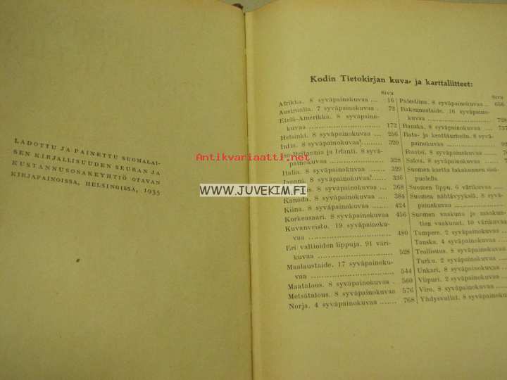 | Saatavilla | 1 kpl | | Julkaisuvuosi | 1935 | | Sivuja | 982 | | Painos | 1. | | Kunto | K3 | | Sidonta/painoasu | Sidottu (kovak.) | | Kielet | Suomi |