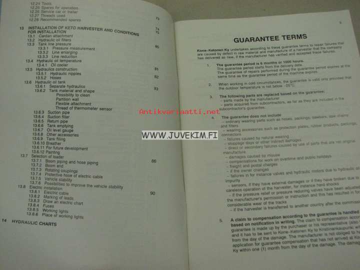 Keto harvesters series 2000 single grip harvesters 51, 100, 150, 500, 1000 -instructions for installation use and maintenance