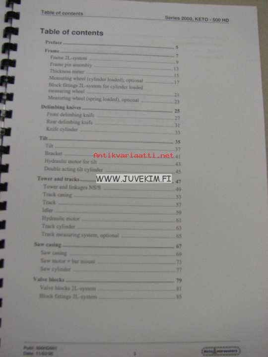 Keto-500 HD series 2000 harvester spare parts catalogue -varaosakirja