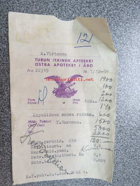 Turun Itäinen Apteekki, 1.12.1958 -apteekkisignatuuri