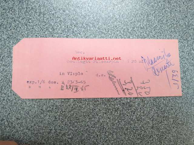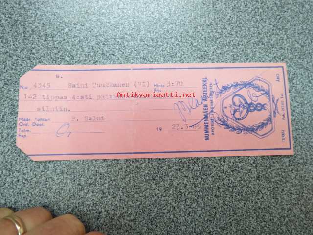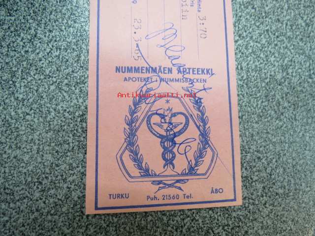 Nummenmäen Apteekki / Apoteket i Nummisbackan, Turku, 23.3.1965 -apteekkisignatuuri