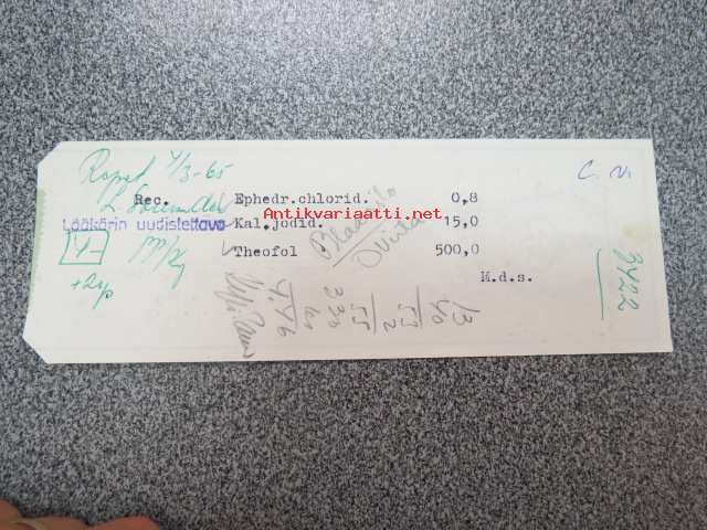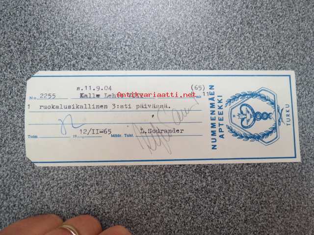 Nummenmäen Apteekki, Turku, 12.2.1965 -apteekkisignatuuri