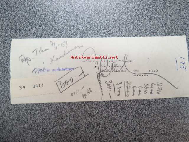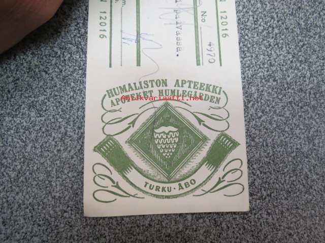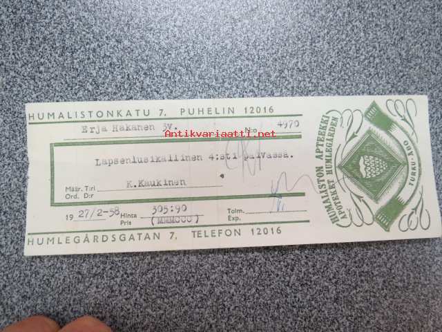 Humaliston Apteekki / Apoteket Humlegården, Turku, 27.2.1958 -apteekkisignatuuri