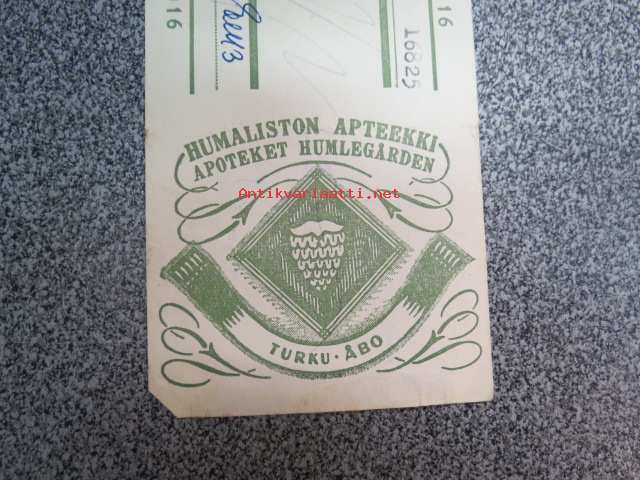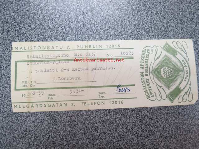 Humaliston Apteekki / Apoteket Humlegården, Turku, 3.8.1959 -apteekkisignatuuri