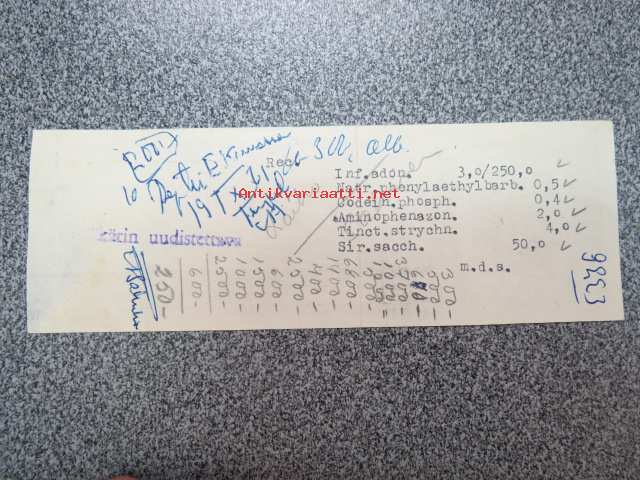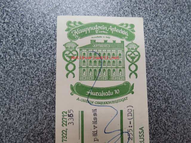 Kauppatorin Apteekki, Turku, 20.1.1961 -apteekkisignatuuri