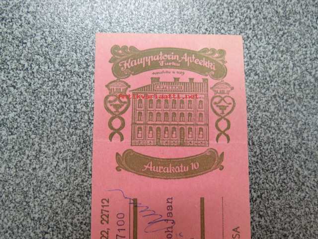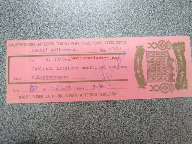 Kauppatorin Apteekki, Turku, 15.3.1965 -apteekkisignatuuri