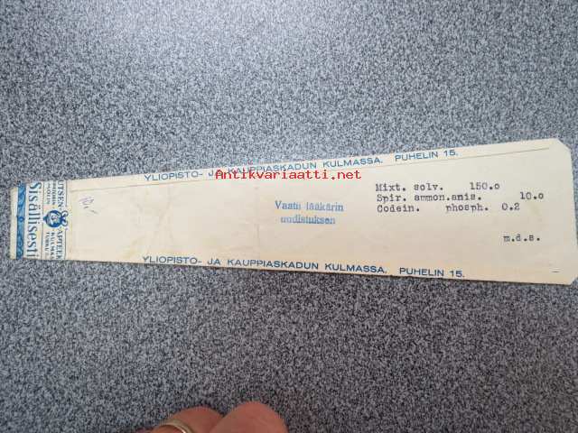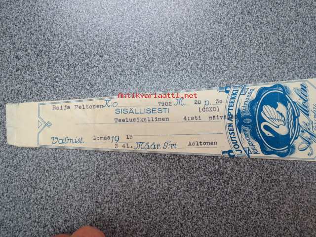 Joutsen Apteekki, Turku, 13.3.1941 -apteekkisignatuuri