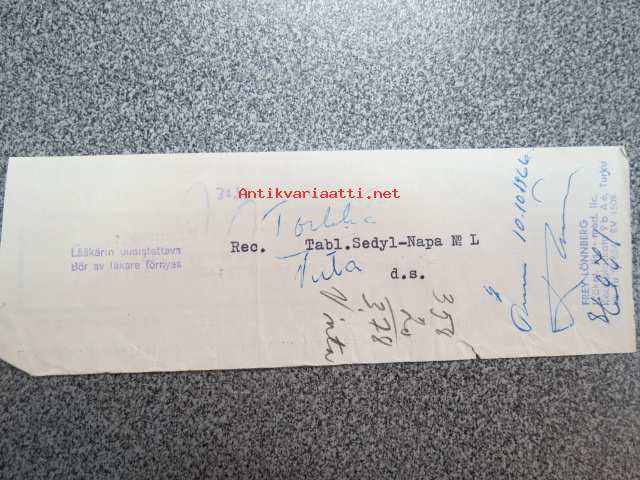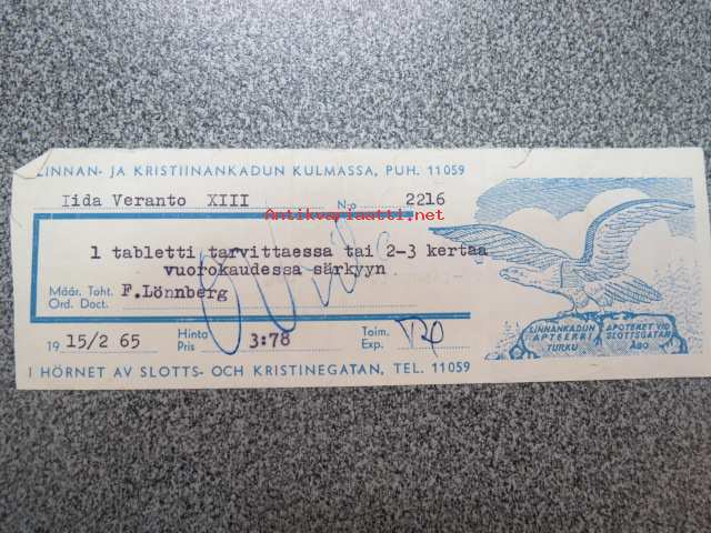Linnankadun Apteekki - Apoteket vid Slottsgatan, Turku, 15.2.1965 -apteekkisignatuuri