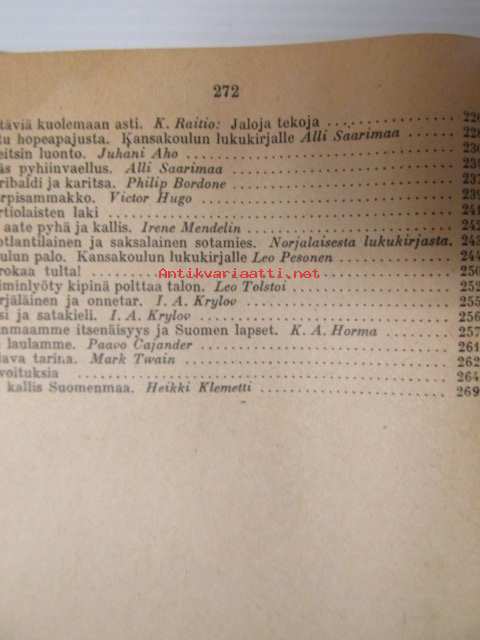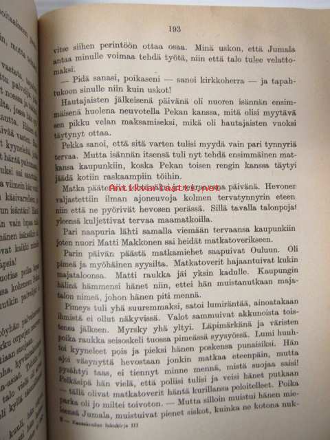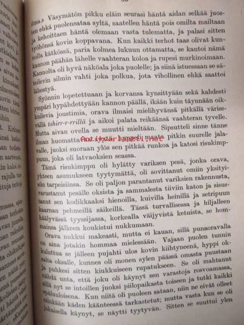 | Saatavilla | 1 kpl | | Julkaisuvuosi | 1949 | | Sivuja | 271 | | Painos | 14. | | Kunto | K2 | | sidos vinossa, katso kuvista tarkemmin | | Sidonta/painoasu | Kuvitettu kovakantinen | | Kielet | Suomi |