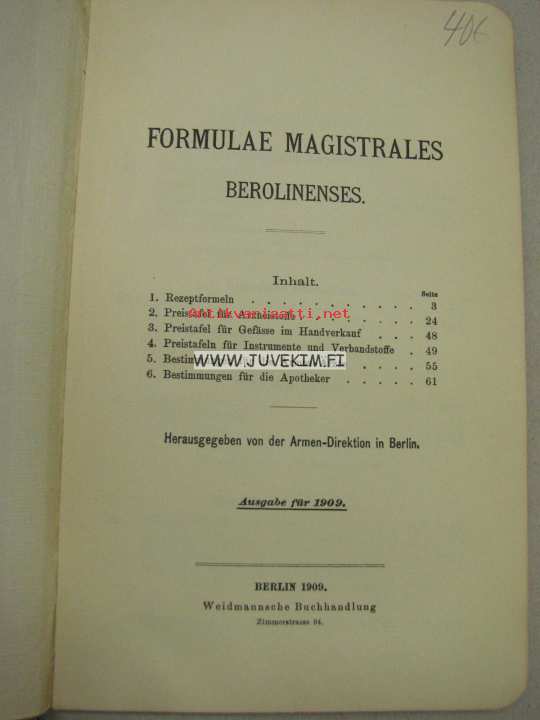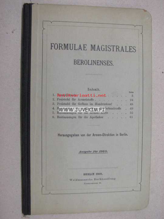 Herausgegeben von der Armen-Direktionen in Berlin, 190914 x 22 cm kirja. Farmasian alan jonkinmoinen luetelo.