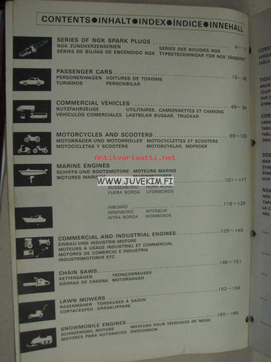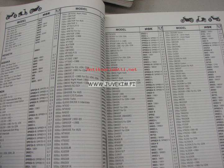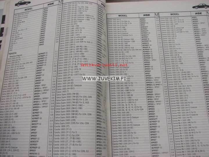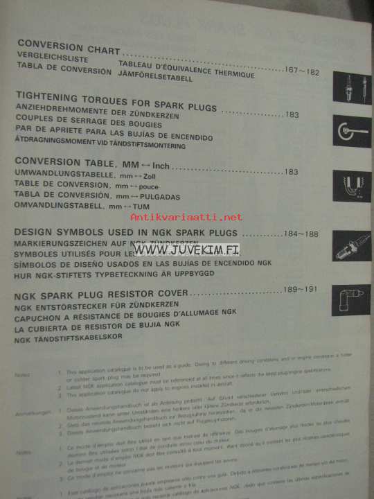 NGK Spark plugs 1990-1991 -sytytystulppaluettelo