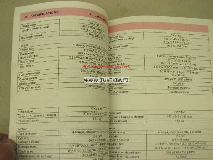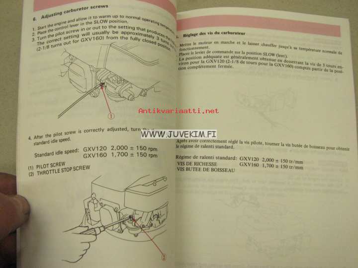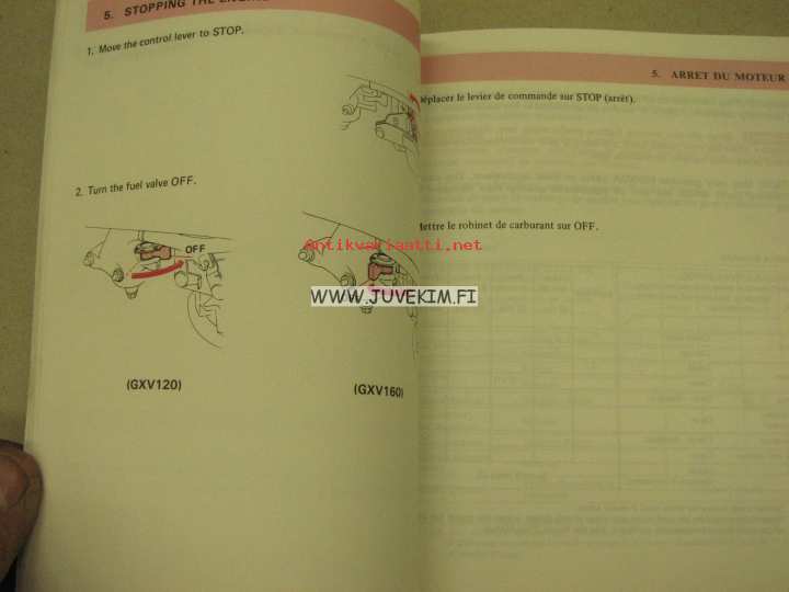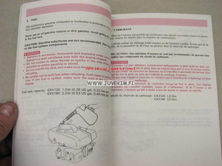 Honda GXV120 / 160 owner´s manual -käyttöohjekirja