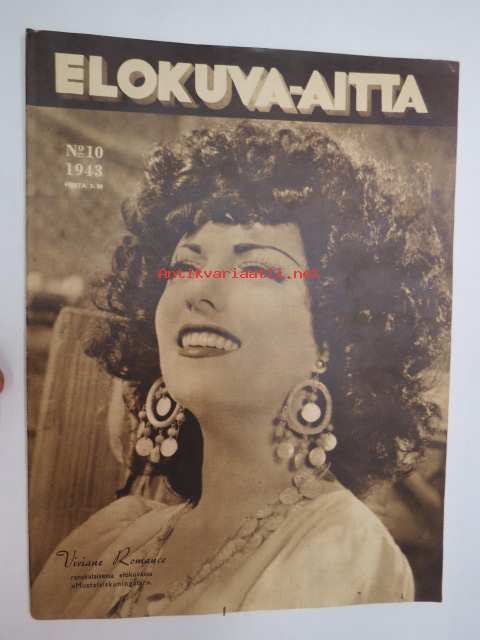 Elokuva-Aitta 1943 nr 10 sis. mm. seur. artikkelit / kuvat; Kansikuvassa Viviane Romance - Mustalaiskuningatar, Merirosvon tytär, Irma Seikkula, Emmi Jurkka,