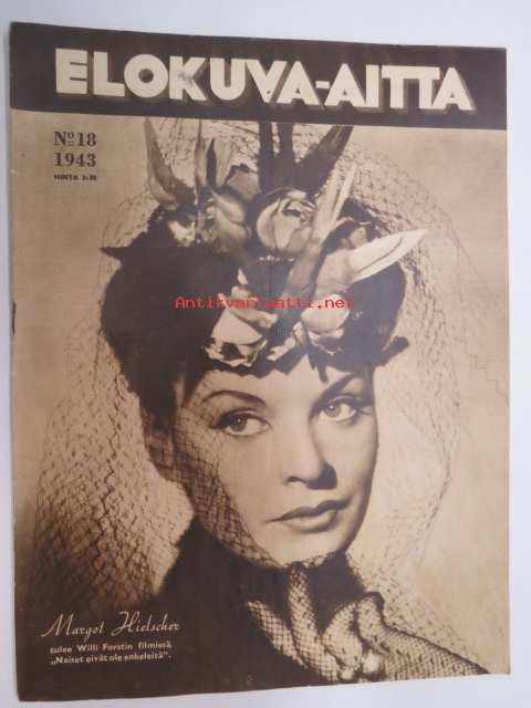 Elokuva-Aitta 1943 nr 18 sis. mm. seur. artikkelit / kuvat; Kansikuvassa Margot Hielscher - Naiset eivät ole enkeleitä, James Cagney, Simo Penttilä, Tshekkiläinen tyyli, Claudette Colbert, Ihmemaa Oz, Naisia odotussalissa - kouraantuntuva ja vavisuttava varoitus kaikille onnettomille naisille, ym.22 x 29 cm.