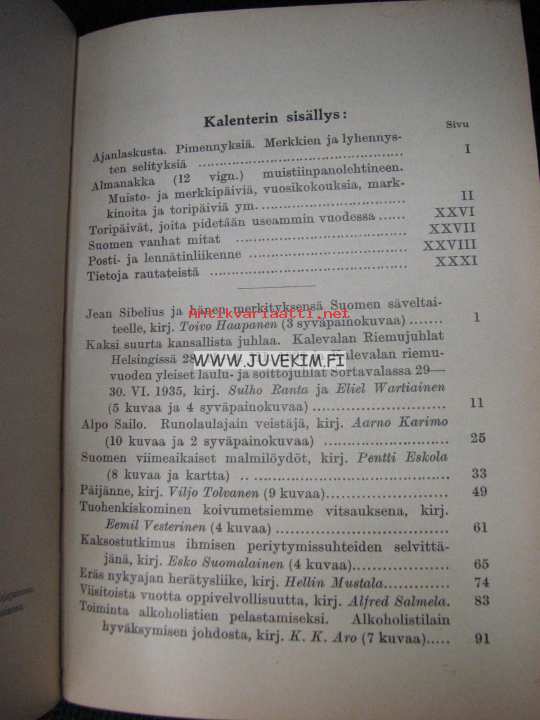 | Saatavilla | 1 kpl | | Julkaisuvuosi | 1935 | | Sivuja | 226 | | Painos | 1. | | Kunto | K3 | | Sidonta/painoasu | Sidottu (kovak.) | | Kielet | Suomi |