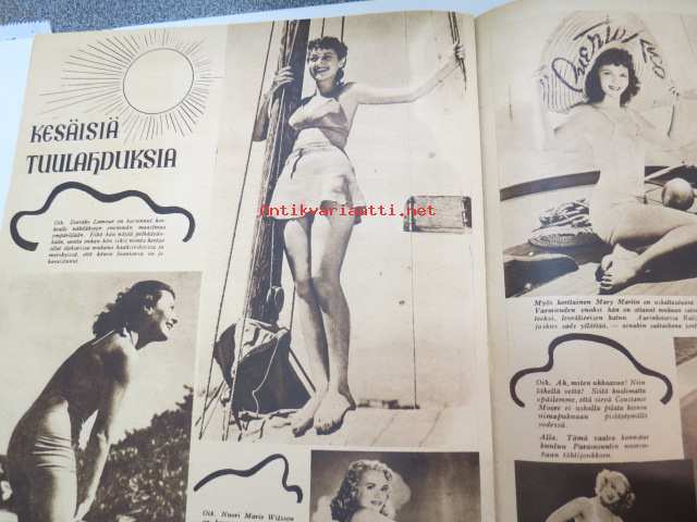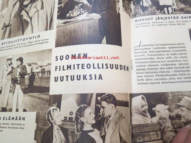 Elokuva-Aitta 1942 nr 13-14 sis. mm. seur. artikkelit / kuvat; Kansikuvassa Olavi Reimas - Keinumorsian, Lilian Ellis, Gerhild Weber, René Deligen, Kaija Rahola on raikas ja luonnollinen, Suomen Filmiteollisuuden uutuuksia, Carl Raddatz, Claudette Colbert, ym.22 x 29 cm.