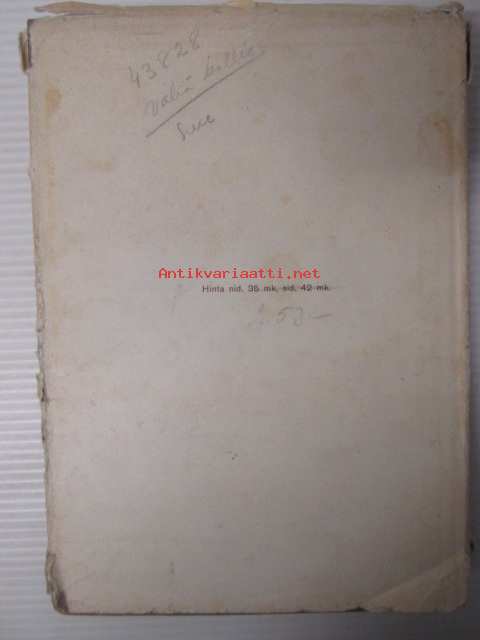 | Saatavilla | 1 kpl | | Julkaisuvuosi | 1931 | | Sivuja | 304 | | Painos | 4. | | Kunto | K3 | | Kansipaperi K2 | | Sidonta/painoasu | Sidottu (kansipaperit) | | Kielet | Suomi |