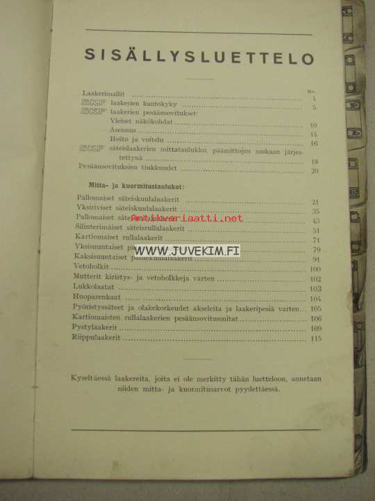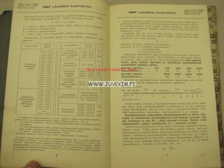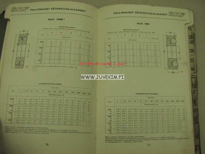 SKF Kuulalaakereita rullalaakereita -mitta- ja kuormitustaulukot