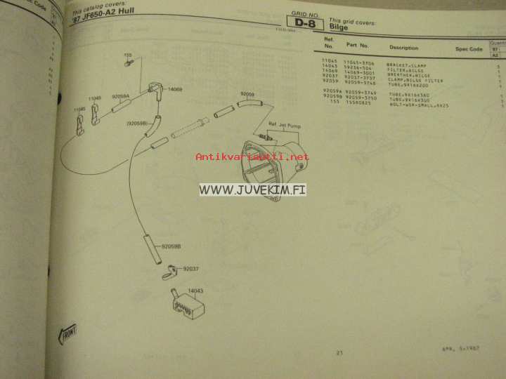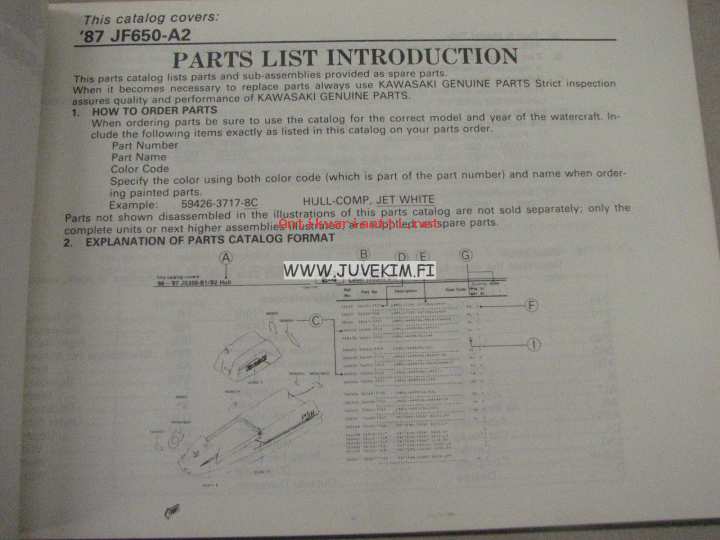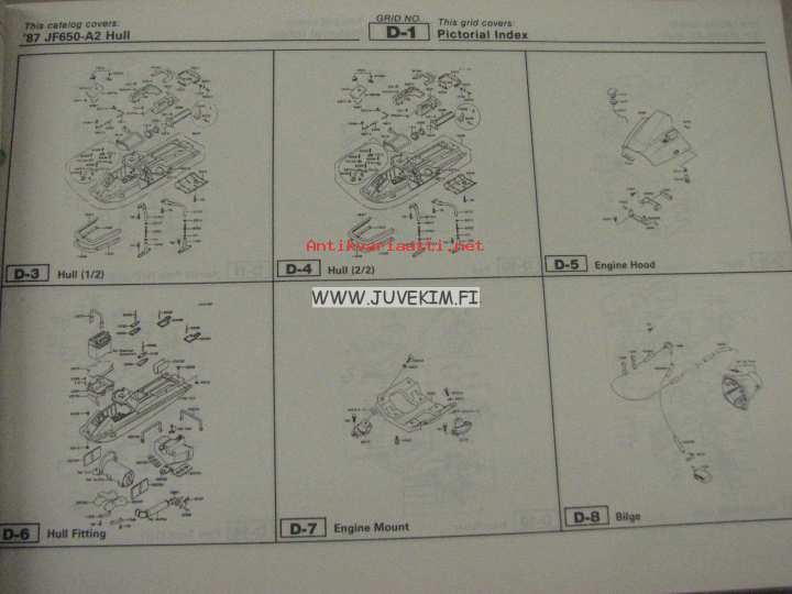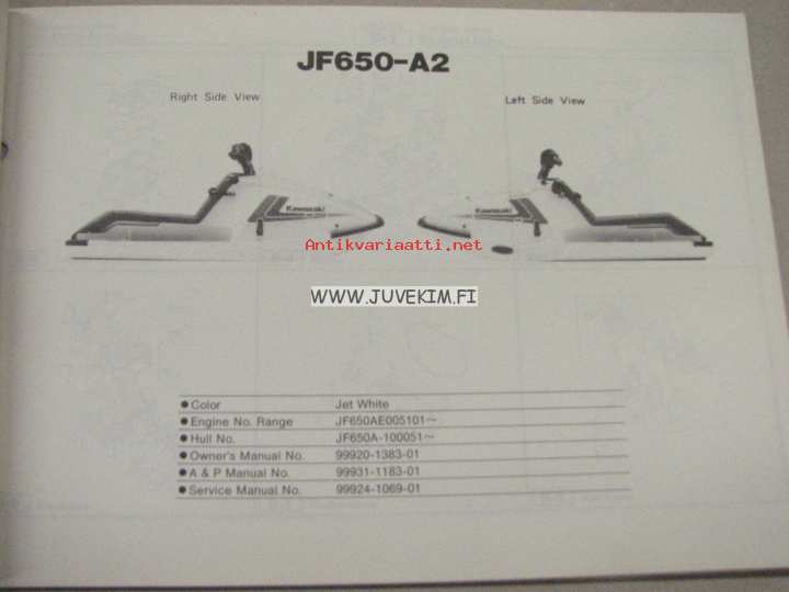 Kawasaki JF650-a (Jet ski X-2) parts catalog -varaosaluettelo