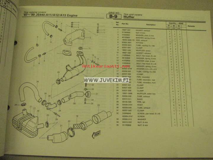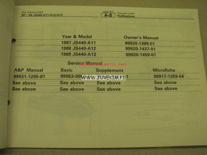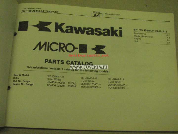 Kawasaki JS440-A11/A12/A13 parts catalog -varaosaluettelo