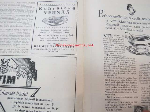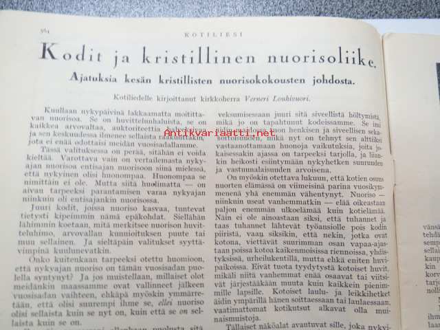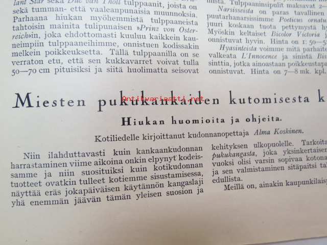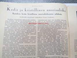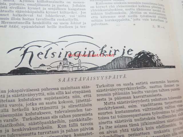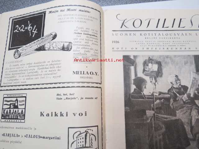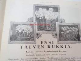 Kotiliesi 1926 nr 20 lokakuun toinen numero (Sirkka - Nuorten toveri 1926 nr 20 -lehti nidottu mukaan) sis. mm. seur. artikkelit / kuvat / mainokset; Nokia kalossit Karjala-Margariini, Kodit ja kristillinen nuorisoliike, Elintarvemessut Helsingissä, Henkisen työn tekijän terveydenhoito, Ensi talven kukkia - Kukkasipulien hyötämisestä kotona, Miesten pukukankaiden kutomisesta kotona, Kaalikääryleet, Käsiemme hoito, Helsingin kirje, Hangon keksit, ym.21 x 29 cm.