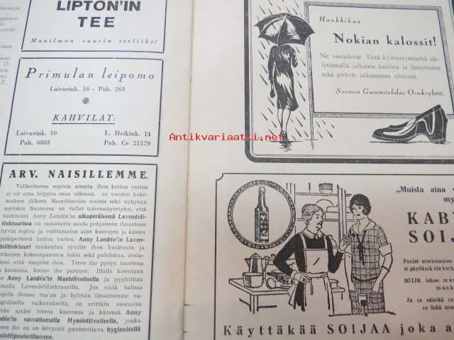Kotiliesi 1926 nr 20 lokakuun toinen numero (Sirkka - Nuorten toveri 1926 nr 20 -lehti nidottu mukaan) sis. mm. seur. mainokset; Nokia kalossit, Hangon keksi