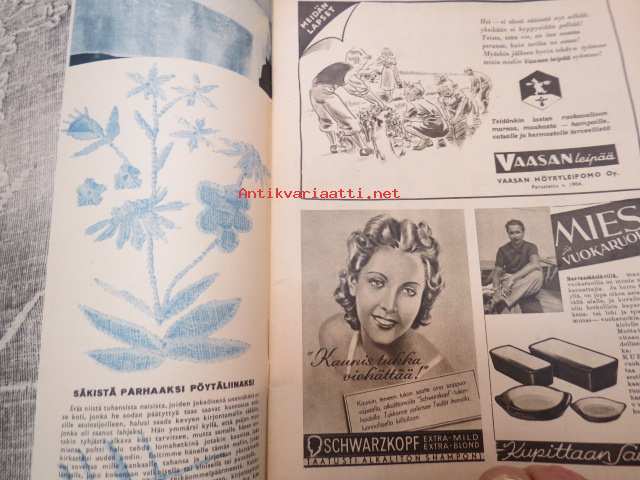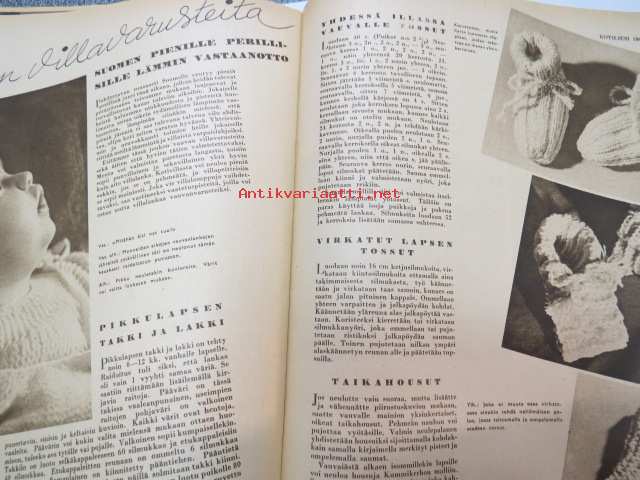 Kotiliesi 1941 nr 18 syyskuu II sis. mm. seur. artikkelit / kuvat / mainokset; Kansikuvitus Martta Wendelin, Säkistä parhaaksi pöytäliinaksi teko-ohje sivulla