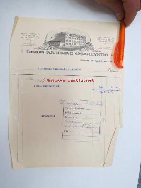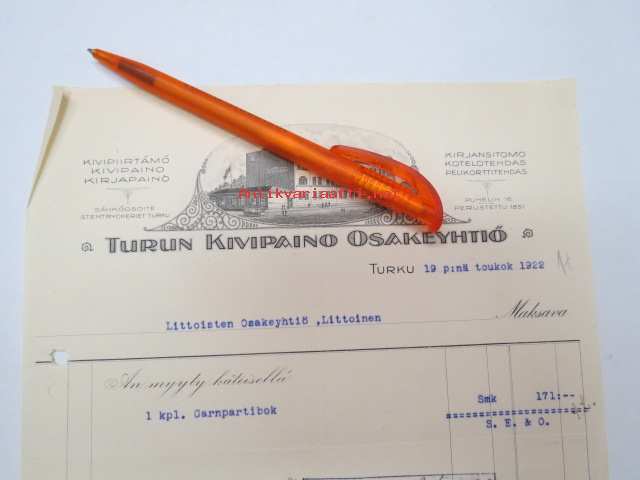 Turun Kivipaino Oy, Turku, 19.5.1922 -asiakirja
