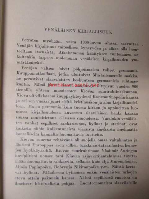 | Saatavilla | 1 kpl | | Julkaisuvuosi | 1936 | | Sivuja | 917 | | Painos | 1 | | Kunto | K2 | | Sidonta/painoasu | Nahkaselkä | | Kielet | Suomi |
