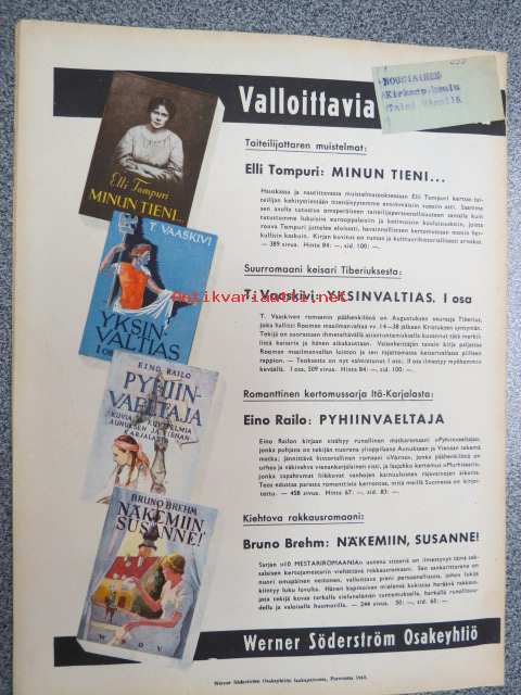 Kotiliesi 1942 nr 6, maaliskuu II, sis. mm. seur artikkelit / kuvat / mainokset; Kansikuva Martta Wendelin, Isänmaan laina, Entisajan kodikkuutta - Turku