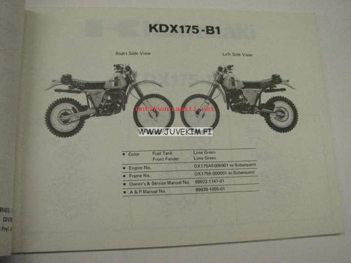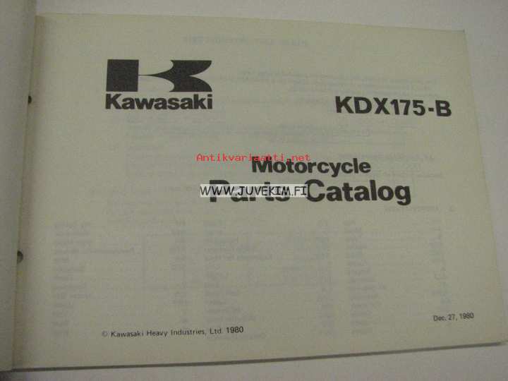 Kawasaki KDX175-B parts catalog -varaosaluettelo