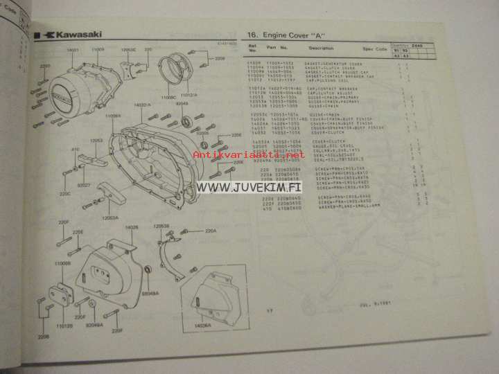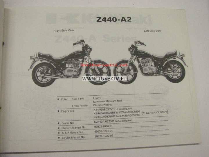 Kawasaki Z440-A (A-2, A-3) parts catalog -varaosaluettelo