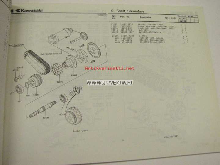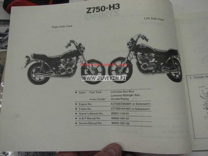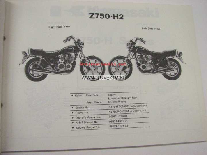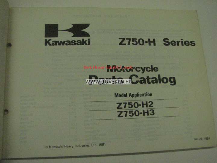 Kawasaki Z750-H (H-2, H-3) parts catalog -varaosaluettelo