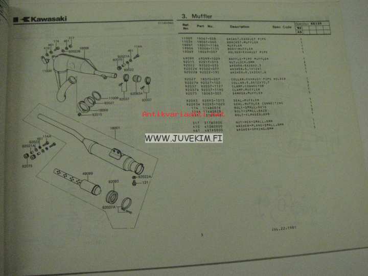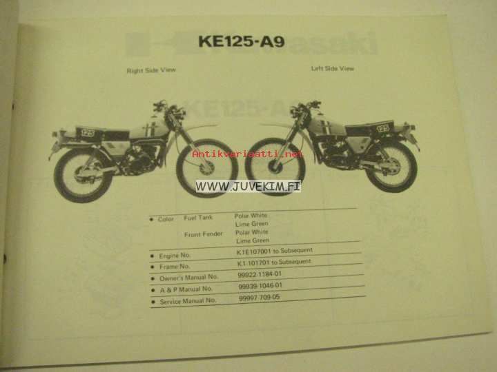 Kawasaki KE125-A parts catalog -varaosaluettelo