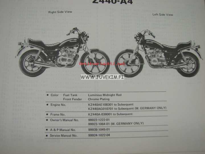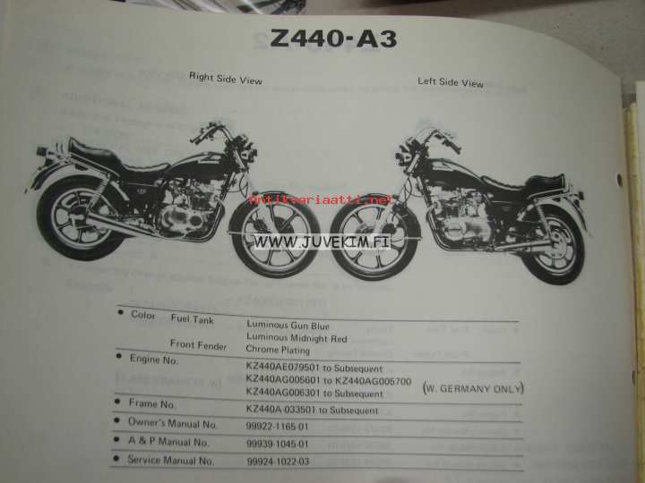 Kawasaki Z440-A A-2, A-3, A-4 parts catalog -varaosaluettelo