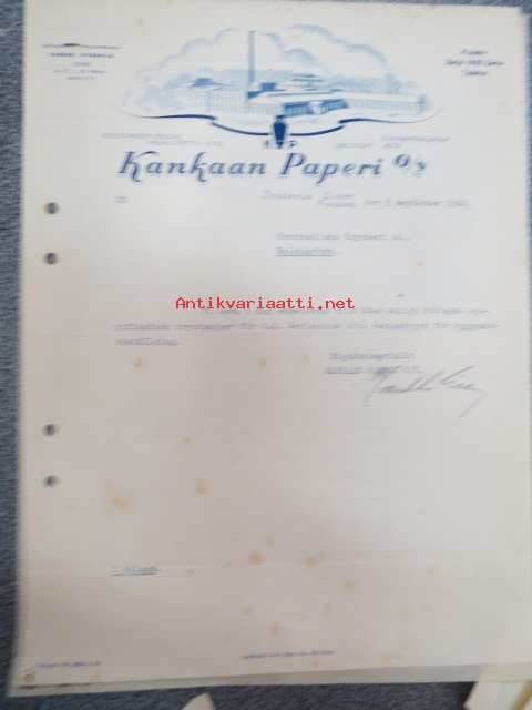 Kankaan Paperi Oy, Jyväskylä, 3.9.1940 -asiakirja / firmalomake