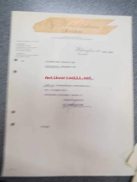 Oy Metallikutomo - Metko, Brunakärr, 25.5.1940 -asiakirja / firmalomake