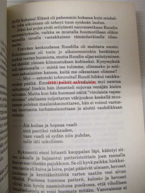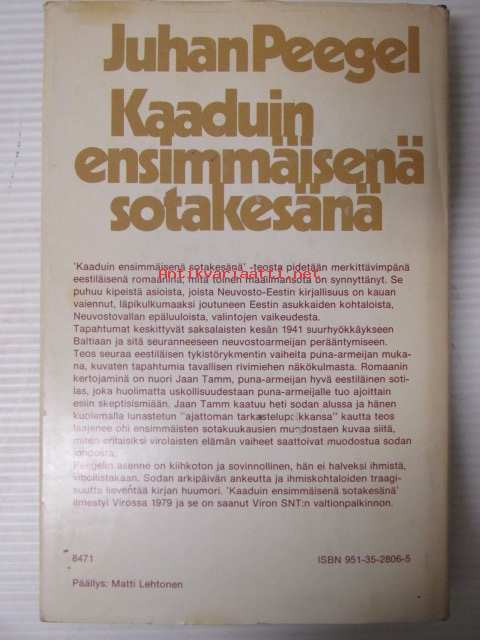 | Saatavilla | 1 kpl | | Julkaisuvuosi | 1983 | | Sivuja | 254 | | Kunto | K3 | | Sidonta/painoasu | Sidottu (kansipaperit) | | ISBN | 951-35-2806-5 | | Kielet | Suomi |
