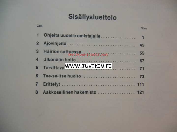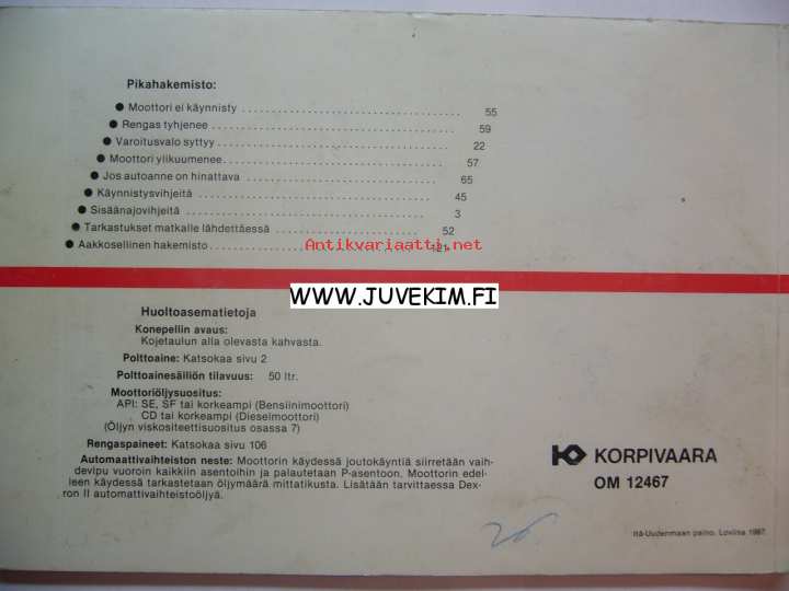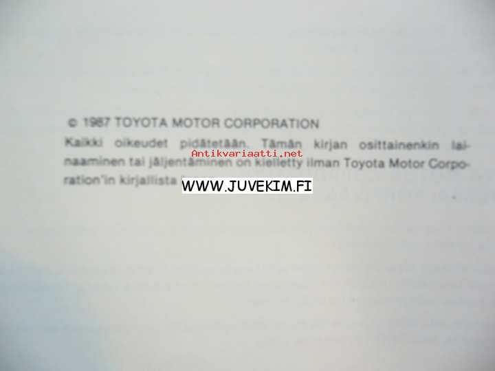 | Saatavilla | 1 kpl | | Julkaisuvuosi | 1987 | | Sivuja | 119 | | Kunto | K3 | | Sidonta/painoasu | Nidottu (pehmeäk.) | | Kielet | Suomi |