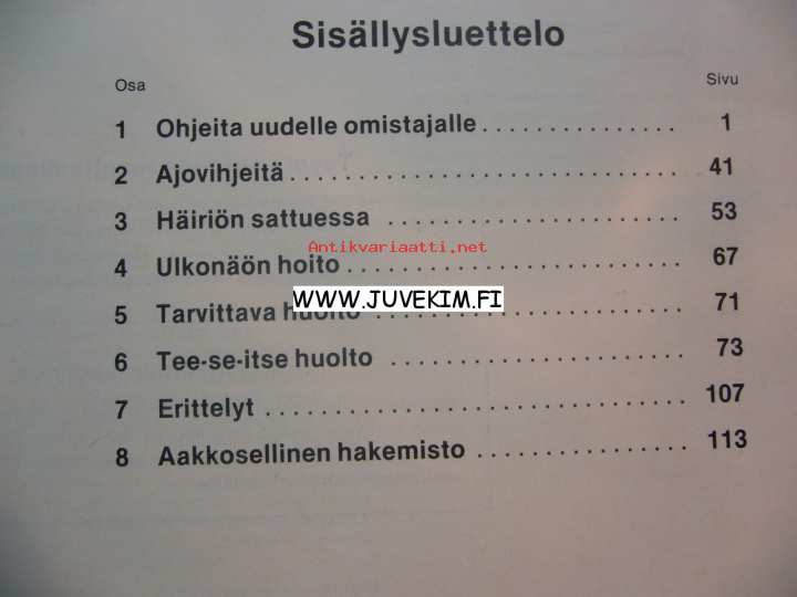 | Saatavilla | 1 kpl | | Julkaisuvuosi | 1988 | | Sivuja | 113 | | Kunto | K3 | | Sidonta/painoasu | Nidottu (pehmeäk.) | | Kielet | Suomi |