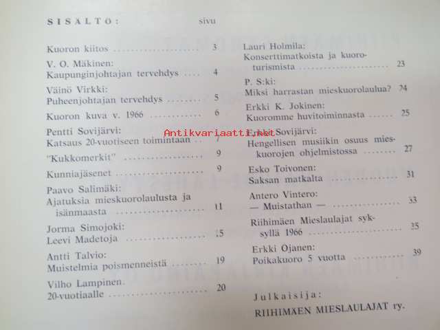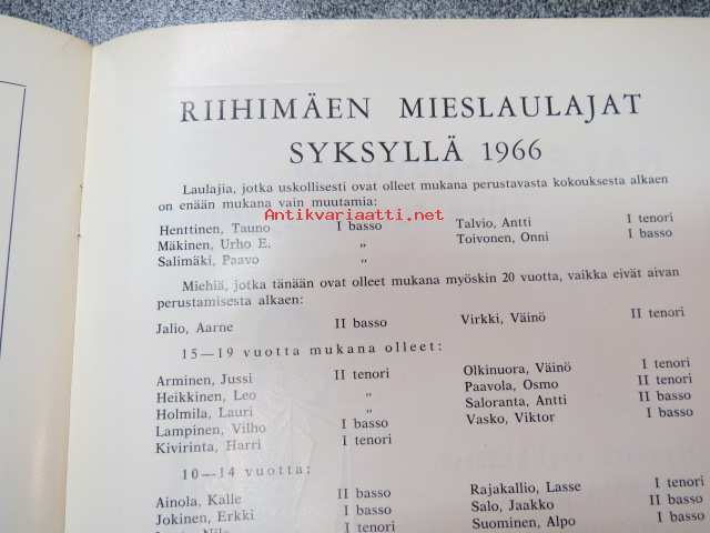 Riihimäen Mieslaulajat, 199617 x 25 cm.