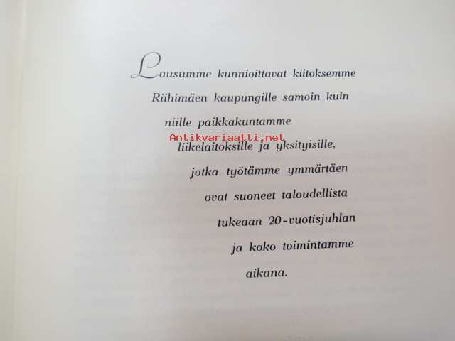 | Saatavilla | 1 kpl | | Julkaisuvuosi | 1996 | | Sivuja | 40 | | Painos | 1. | | Kunto | K3 | | Sidonta/painoasu | Nidottu (pehmeäk.) | | Kielet | Suomi |