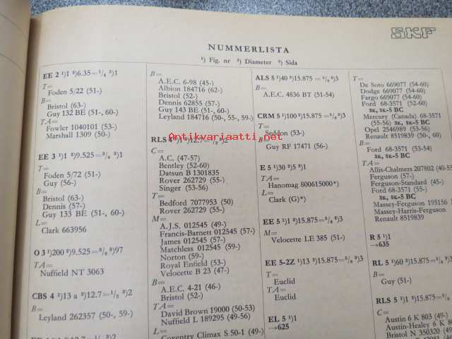 SKF lager för motorfordon (sis. myös eri ajoneuvovalmistajien numerot muutettuna SKF-numeroiksi)