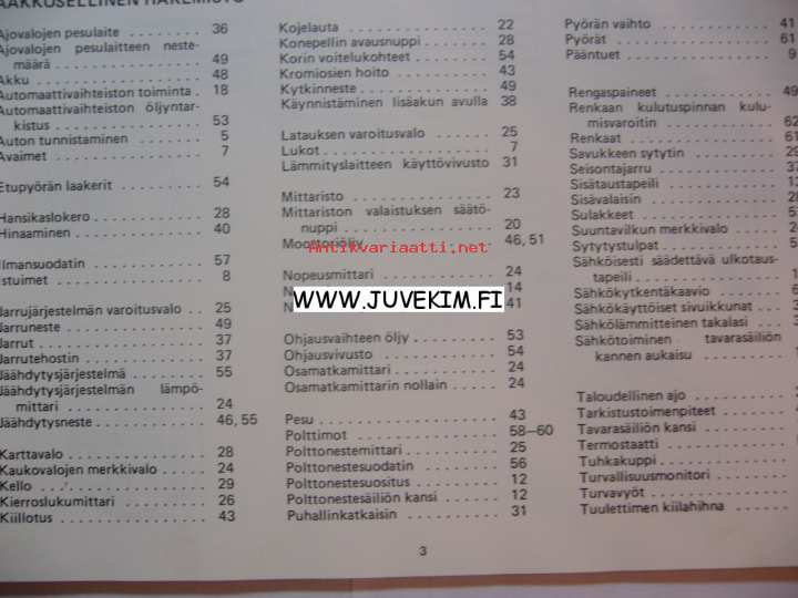 | Saatavilla | 1 kpl | | Julkaisuvuosi | 1979 | | Kunto | K3 | | Sidonta/painoasu | Nidottu (pehmeäk.) | | Kielet | Suomi |