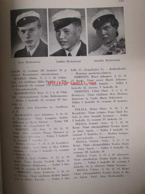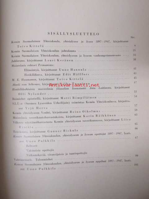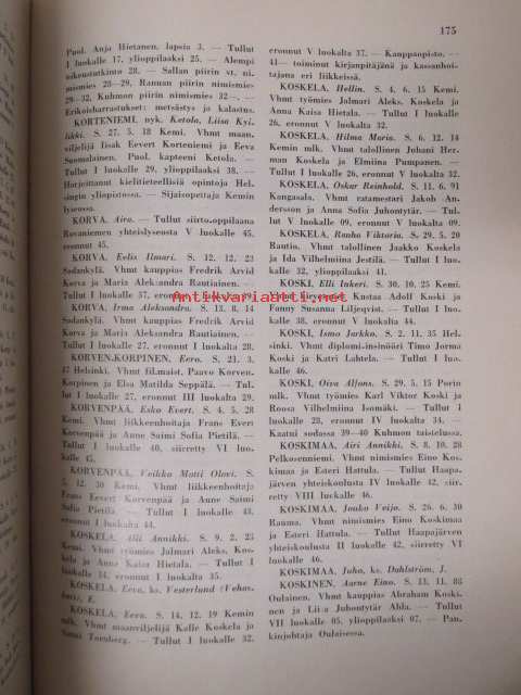 | Saatavilla | 1 kpl | | Julkaisuvuosi | 1947 | | Sivuja | 304 | | Kunto | K2 | | Sidonta/painoasu | Sidottu (kovak.) | | Kielet | Suomi |