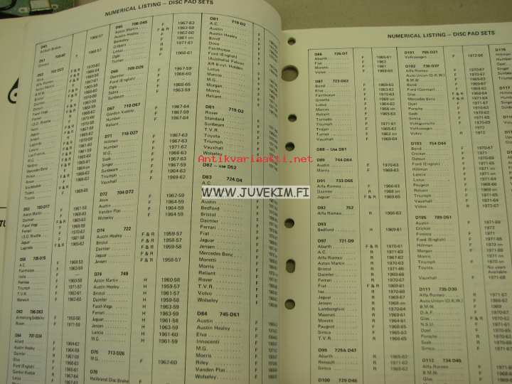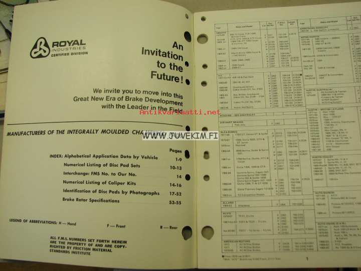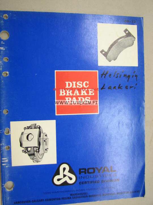 Royal Disc brake pads -luettelo